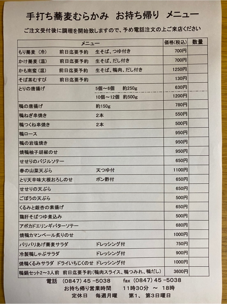 ※店舗は休業中て?す。お持ち帰りのみの対応て?す。 ※注文受付後に調理しますのて?、あらかし?め電話注文の上、こ?来店くた?さい。